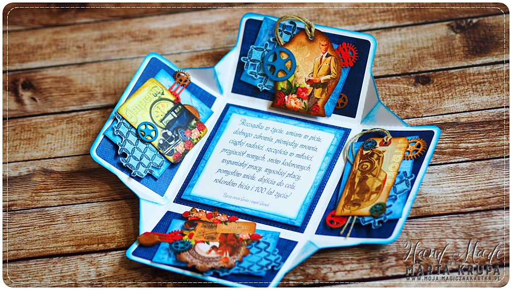 Dzisiaj przedstawiam Eksplodujące Pudełko Męskie, które stworzyłam z papierów