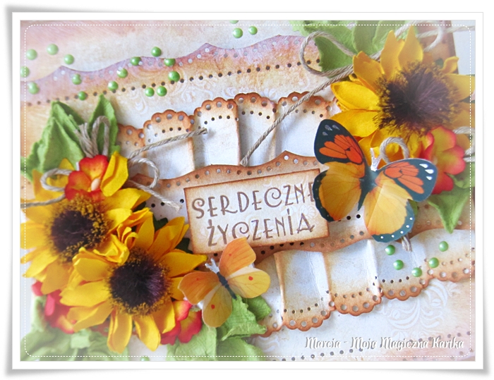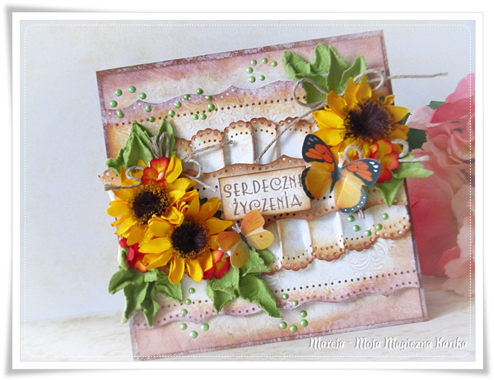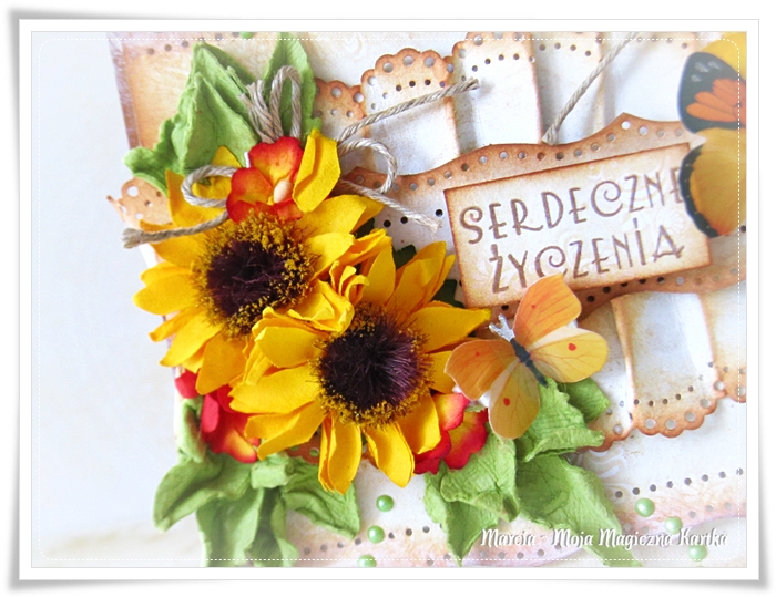 Mnóstwo w niej słońca, ciepła i energii… Mam nadzieję, że tak jak i mnie, ta kartka doda przyprawi Wam uśmiech i radość na cały (podobno słoneczny) weekend ! 🙂