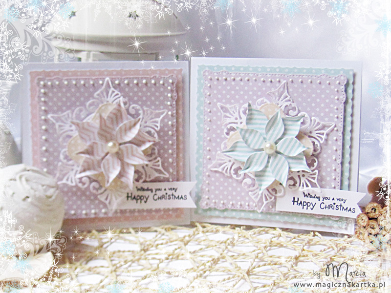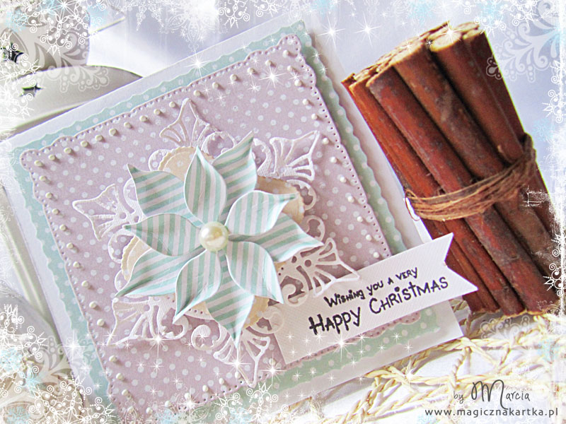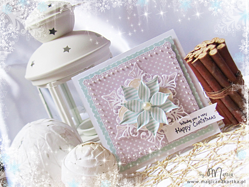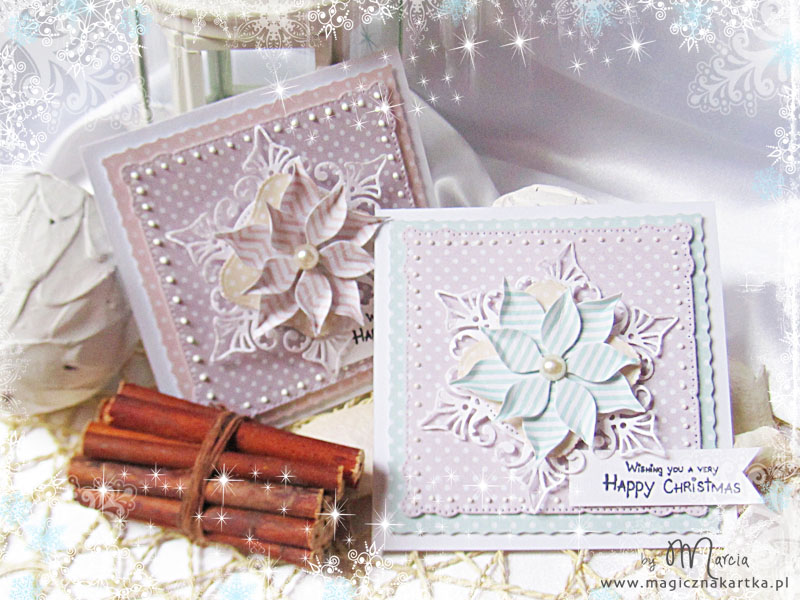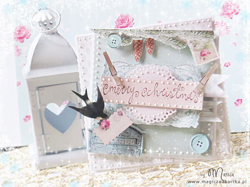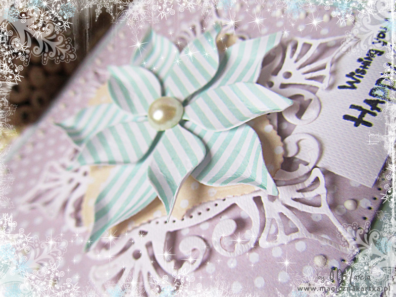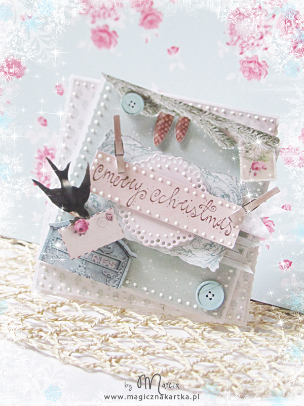 które to postanowiłam pociąć na te Święta….. Dlaczego bałam się je ruszyć? Po zrobieniu poniższej kartki wiem dlaczego….. Ponieważ zakochałam się do granic możliwości w tych wzorach i dodatkach!!!!! Teraz nie ciągle chce mi się mieć te papierki pod nożyczkami (ale one takie fajne, że mi żal :(((( Kartki robią się dosłownie same i myślę, że będzie to bardzo przyjemna odskocznia od moich Magiczno Kartkowych kolekcji 🙂