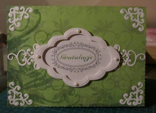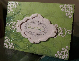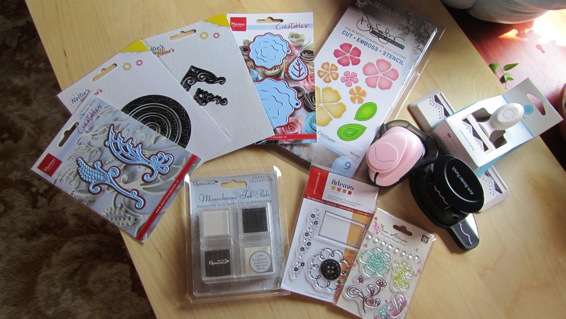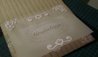 Użyte materiały: wykrojniki Spellbinders (wzory wycięte z papieru wizytówkowego), dwustronny papier z lakierem UV Blumen, oraz mój Digi Stempelek 🙂