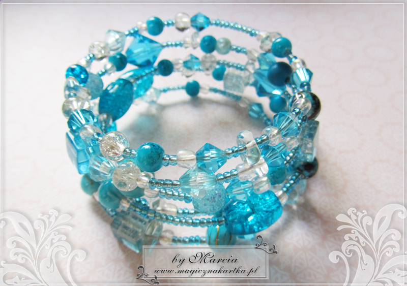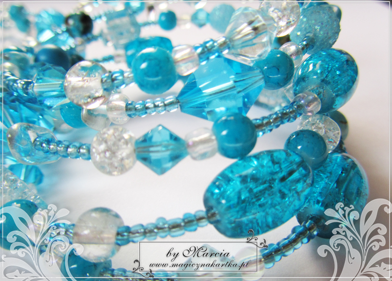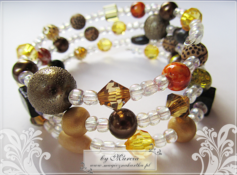 Chwalić się nie będę, ale chcę pokazać bo to moja pierwsza w świecie biżuteria 🙂 Sama nie wiem czy jest co podziwiać bo nie bardzo się na tym znam, ale projekty wzięłam z głowy i jestem z efektu bardzo zadowolona 🙂 Naprawdę bardzo miła odskocznia od kartkowania 🙂 Przedstawiam trzy bransoletki, naszyjnik i parę kolczyków 🙂