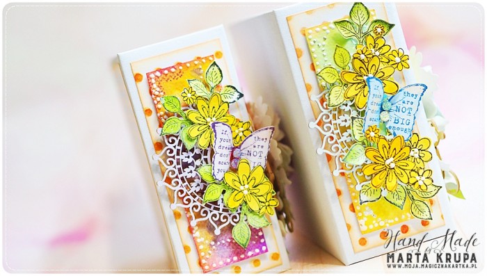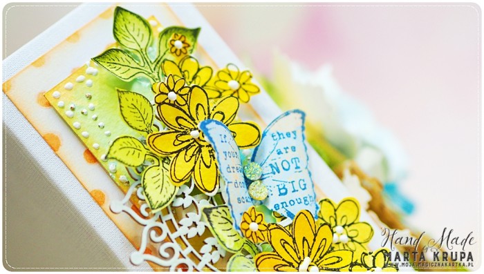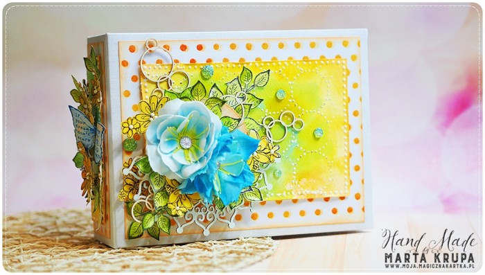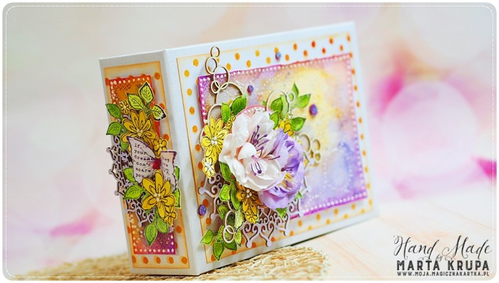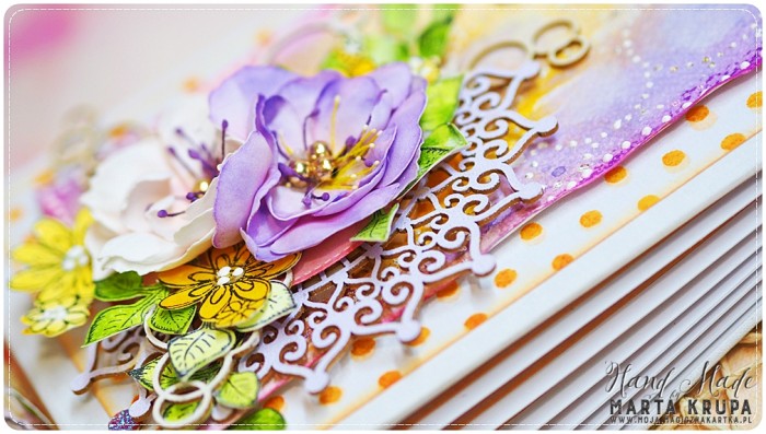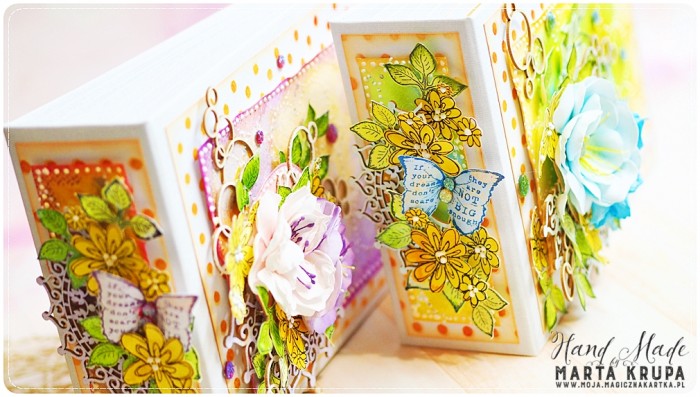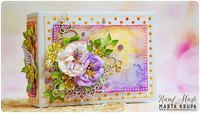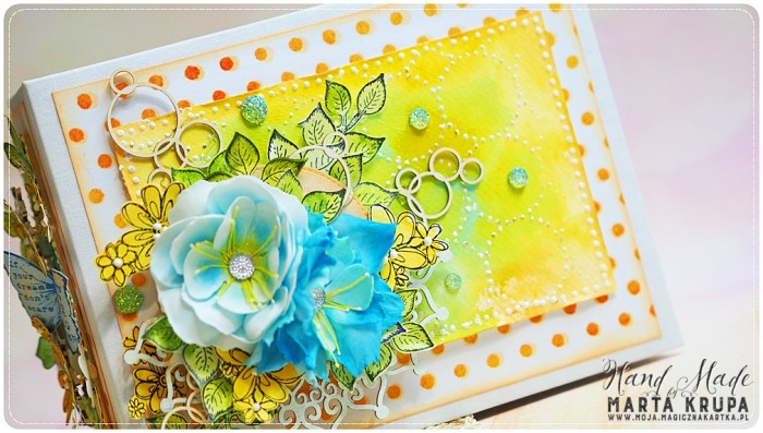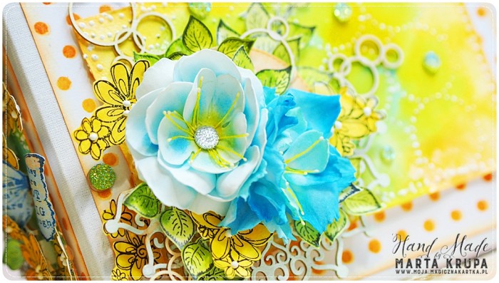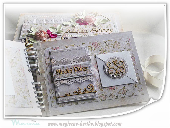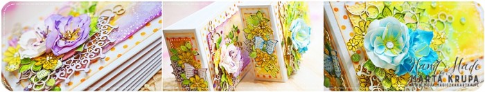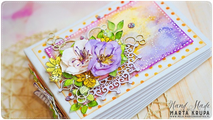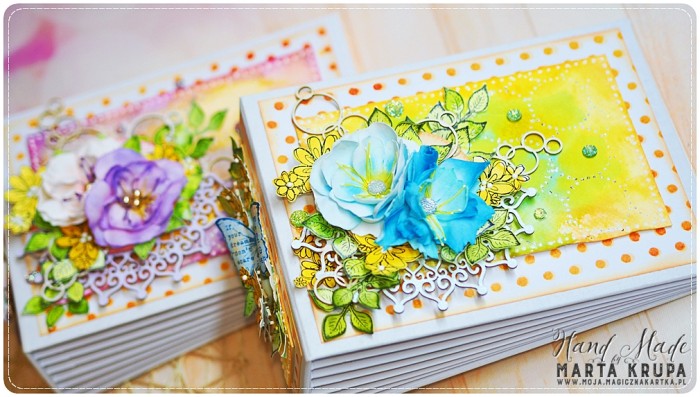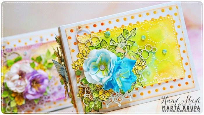 Przy tworzeniu albumów w ruch poszły moje ukochane kolekcje, będące imitacją teł oraz zacieków, w akwarelowym klimacie…..
