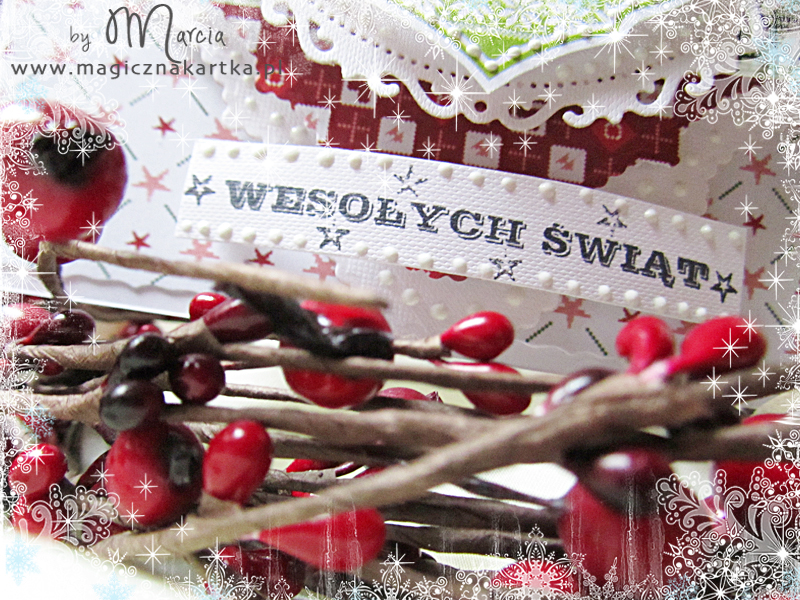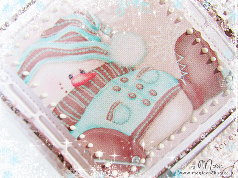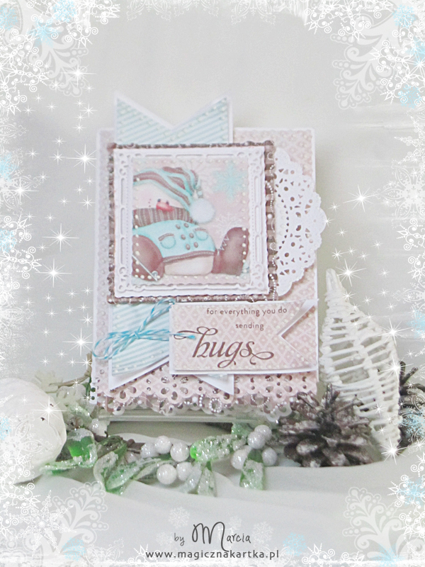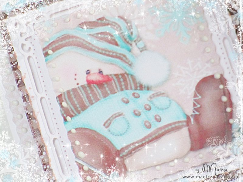 Dzisiaj będzie troszkę skromniej niż wczoraj, ale za to bardzo przestrzennie i na wesoło, bo z radosnym bałwankiem w łyżwach (bałwanków będzie pewnie więcej bo są przesłodkie) oraz z kolekcją Zaczarowane Święta 🙂 Karteczkę zrobiłam specjalnie na wyzwanie mapkowe numer #123 do Waltzingmouse – uwielbiam mapki i bardzo, bardzo lubię stemple tej firmy 🙂