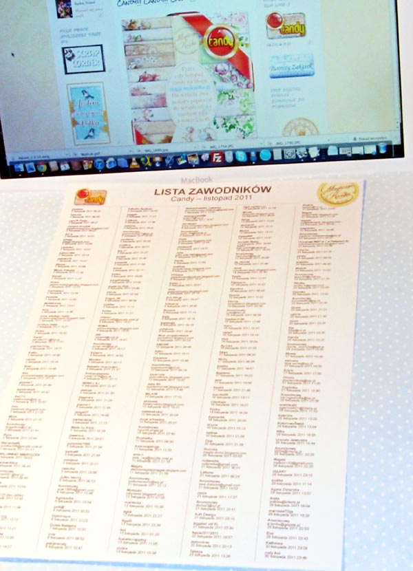 Dzisiaj będzie również bez zdjęć bo niestety moja ukochana komisja gier i zakładów się już ululała, a światło jest takie, że aż wstyd mi pokazywać tu cokolwiek. Nie mniej jednak, losowanie odbyło się w 100% rzetelnie i z zamkniętymi oczami. W losowaniu wzięły tylko te osoby, które spełniły warunki o candy i umieściły w poście na swoim blogu informację o sklepie Magiczna Kartka. Pod informacją o naszym Candy znalazło się aż 133 waszych wspaniałych i przemiłych komentarzy – za co z całego serca oboje z Witkiem dziękujemy.