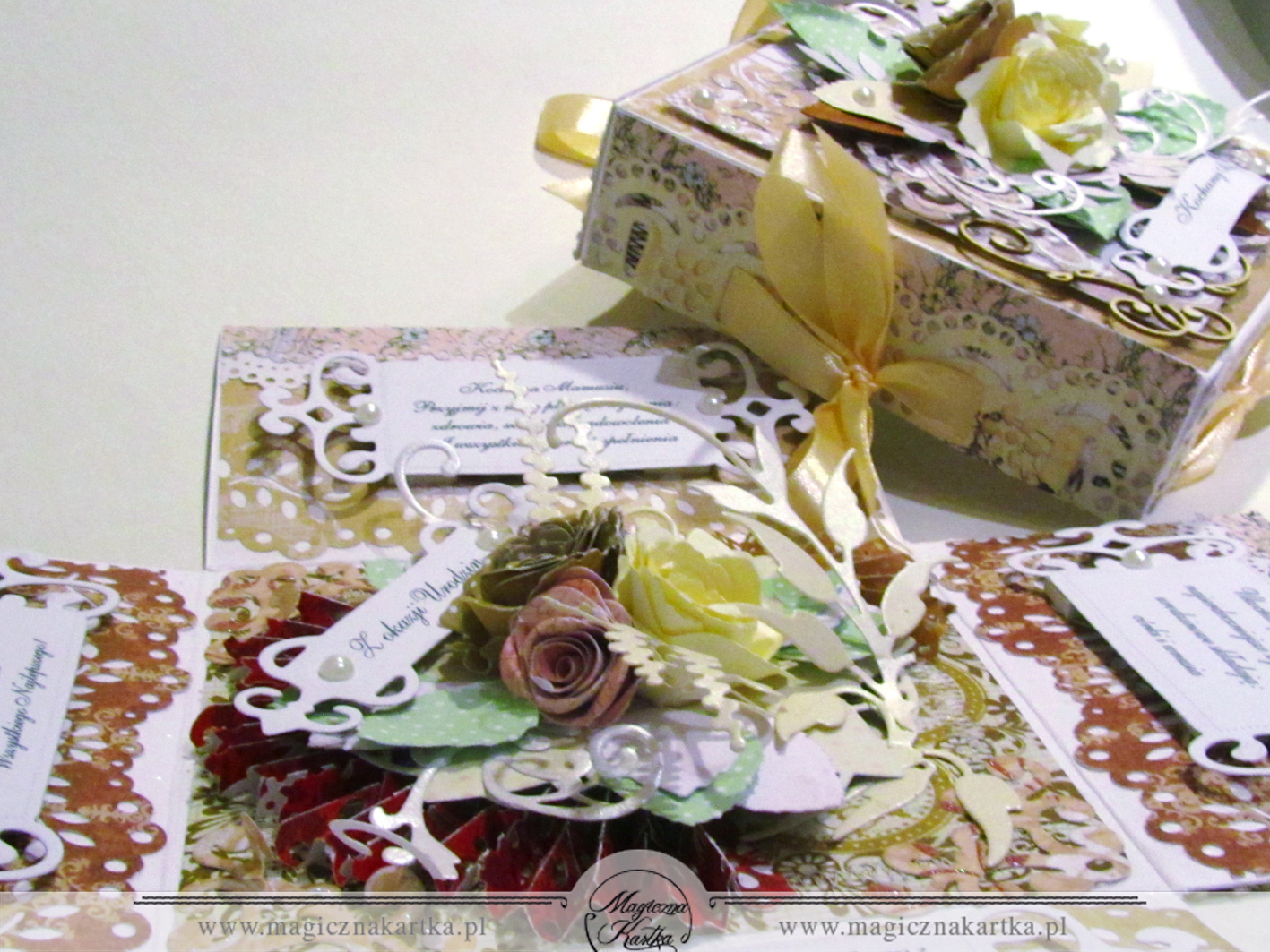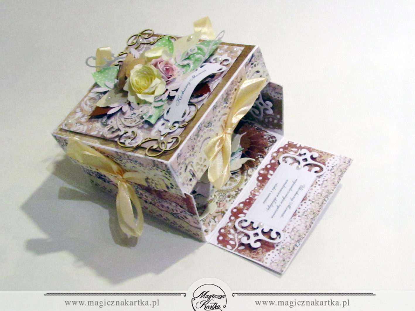 Tutaj jest zupełnie inaczej. Mimo, że o zrobieniu „exploding box” myślałam już bardzo dawno, nie znalazłam wcześniej okazji aby odważyć się zrealizować tą formę upominku.