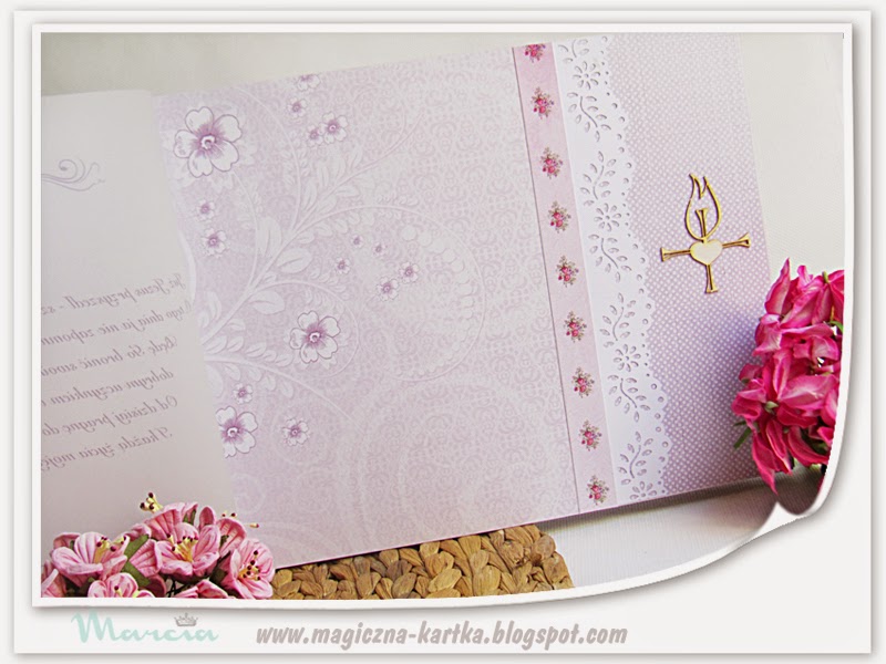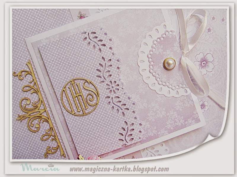 W ruch poszły oczywiście papiery z jednej, z moich największych kolekcji „Letni Poranek” w kolorze lawendowym oraz wycinanki komunijne 🙂