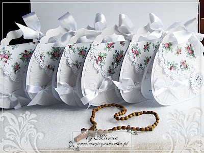 Do zrobienia torebeczek użyłam papierków: Niewinność 004, Niewinność 006 oraz Niewinność 41. Dodatkowo swojego własnego Digi Stempelka oraz wstążek 🙂