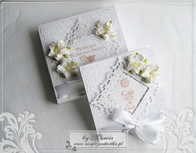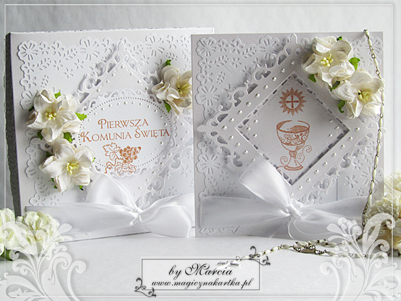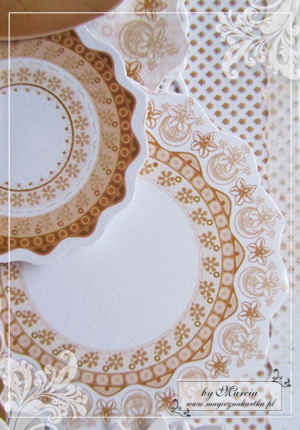Do wykonania tego kompletu użyłam pięknych, grubych papierów perłowych z działu Papiery Ozdobne z Magicznej Kartki.