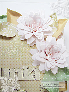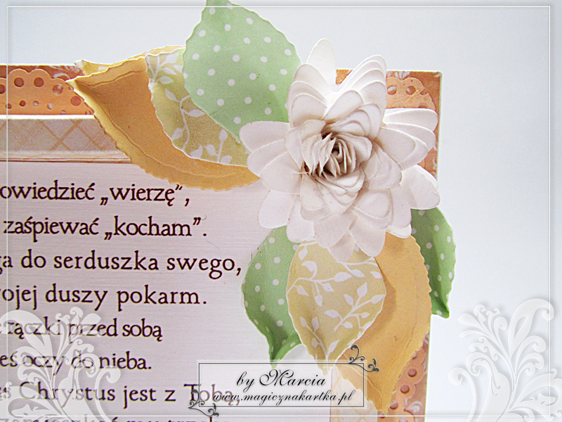 Postanowiłam zrobić karteczkę w całości wykonaną z Niespodziankowych papierów, aby wyjawić Wam co nie co szczegółów i pokazać, że niekiedy wcale nie potrzeba mieć dziurkaczy ani wykrojników aby stworzyć coś oryginalnego – czasami wystarczą jedynie nożyczki, klej i kosteczki dystansowe 🙂