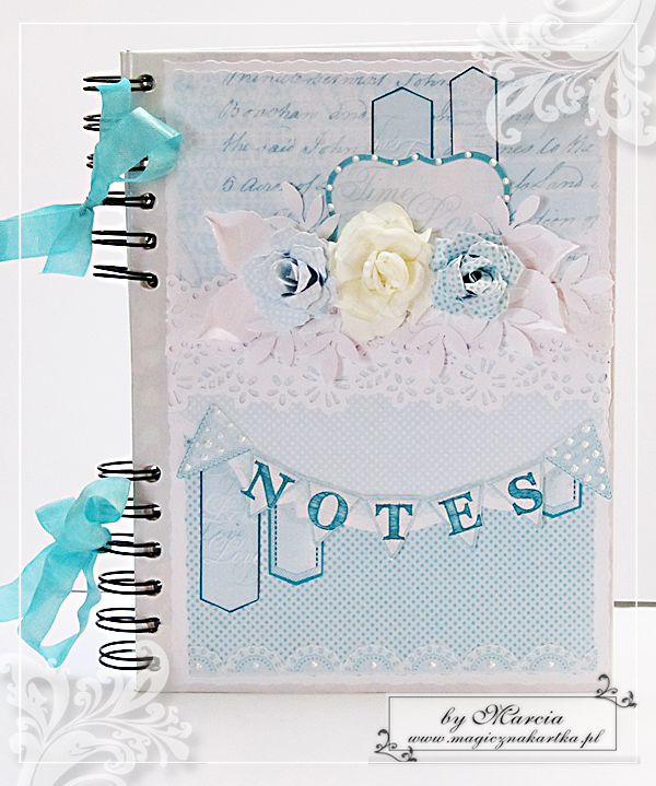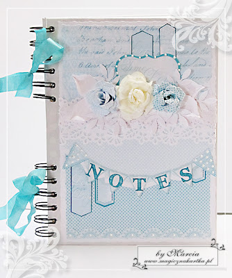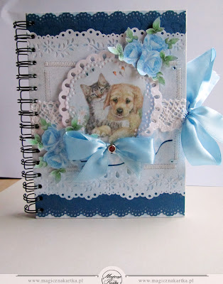 Niebieski pami臋tnik z pieskiem i kotkiem powsta艂 ze 艣licznych b艂臋kit贸w, kolekcji Galerii Papieru – „Us艂ane R贸偶ami” – mojej ulubionej 馃檪