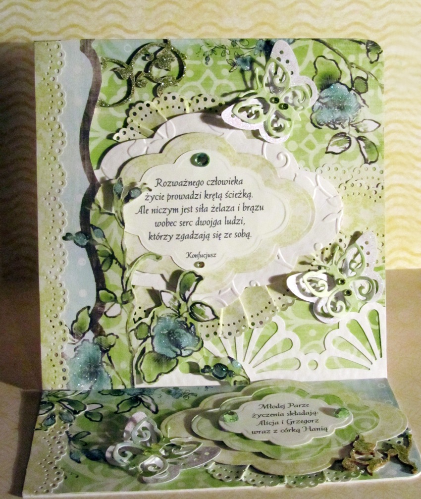 Kwiatuszki własnej roboty, zawijaski ze sklepu Scrapiniec, motylki od Justynki, wykrojniki Spellbinders no i oczywiście dziurkacze Marthy Stewart 🙂
