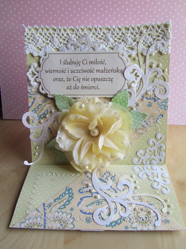 Chciałam tu jeszcze dodać, że podziwiam i szczerze kibicuje tym z Was, które mają na tyle czasu aby robić karteczki i cudeńka z papieru dzień w dzień – bardzo Wam zazdroszczę 🙂 Odwiedzam ulubione blogi i naprawdę wpatruje się w monitor z wielkim zauroczeniem i zdumieniem, jak można tak szybko stworzyć takie cuda :))) Ja swoje tworzyłam dość długo i oto efekty pracy 🙂