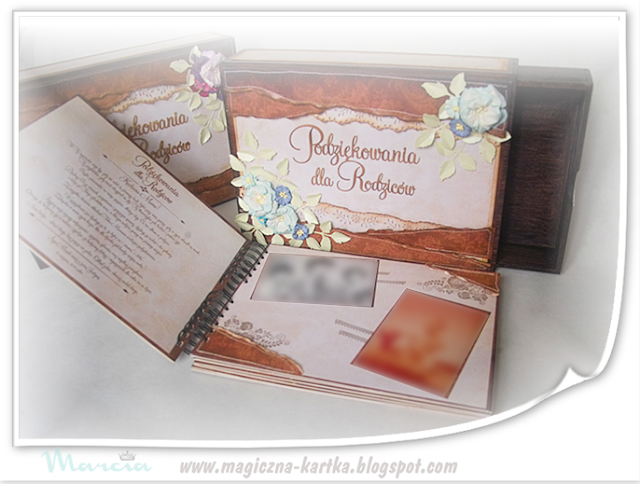 Dzisiaj przygotowałam niezwykłe podziękowania dla rodziców, w formie albumów, chowanych do drewnianych skrzynko – szufladek.