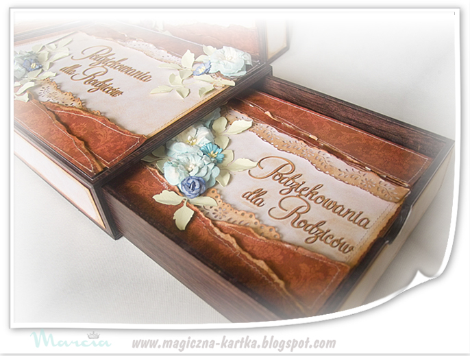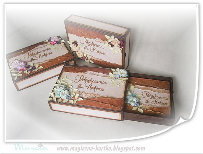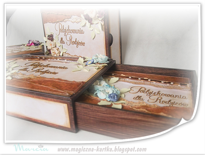 Dzisiaj przygotowałam niezwykłe podziękowania dla rodziców, w formie albumów, chowanych do drewnianych skrzynko – szufladek.