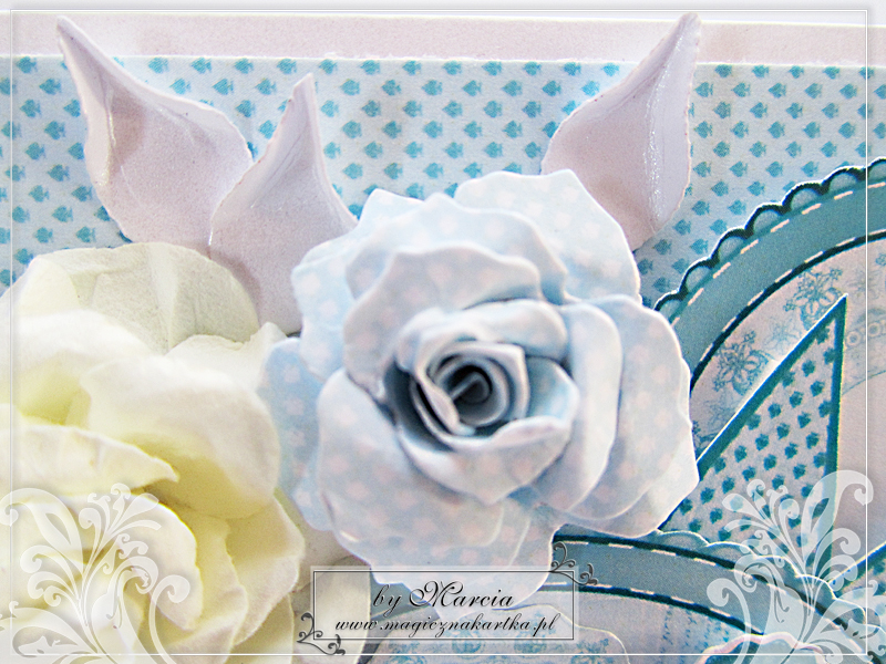 Wystarczyły mi kosteczki 3D no i wykrojnik z którego zrobiłam różyczki (również z „Letnich” papierów) – i wszystko gotowe – proste, prawda? 🙂